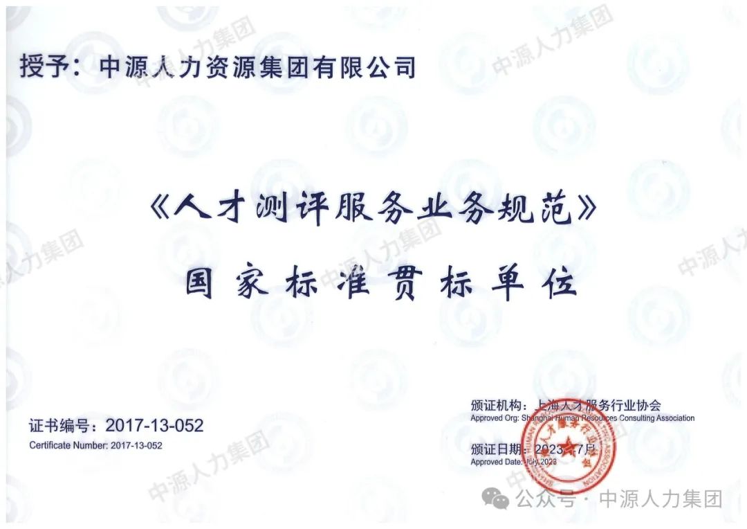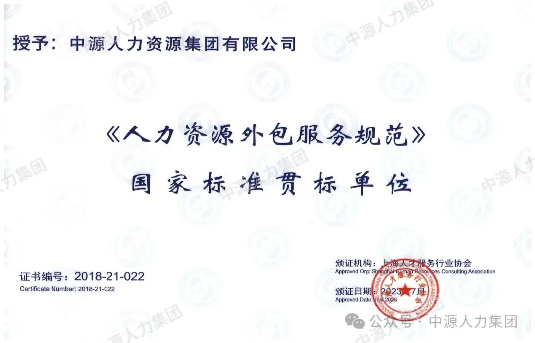 国家标准贯标,是对企业管理水平、产品质量、服务品质的全方位考验。此次荣获国家标准贯标单位,不仅是对我们过去工作的高度认可,更是我们未来发展的强大动力。我们深知,荣誉只是新的起点。未来,中源人力资源集团将继续坚守国家标准,不断提升服务质量和水平,为客户提供高质量的人力资源服务。